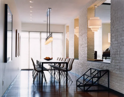 The client, a dealer of photographs, requested a zen feeling for her loft. We achieved this with natural colors and simple clean architectural elements. At 100 feet long and 25feet wide the space also needed something to moderate its proportions.